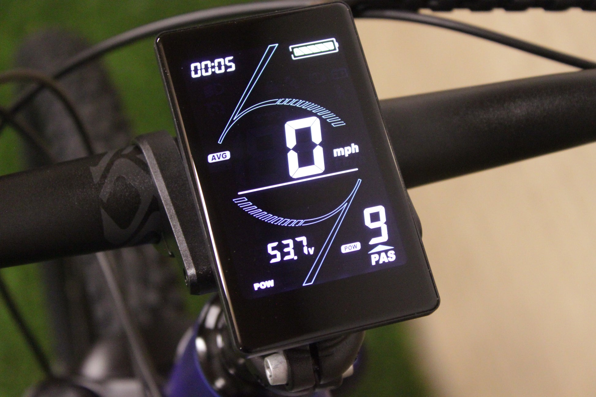 Display Features: Current/Average/Top speed, Voltage, Battery Percentage