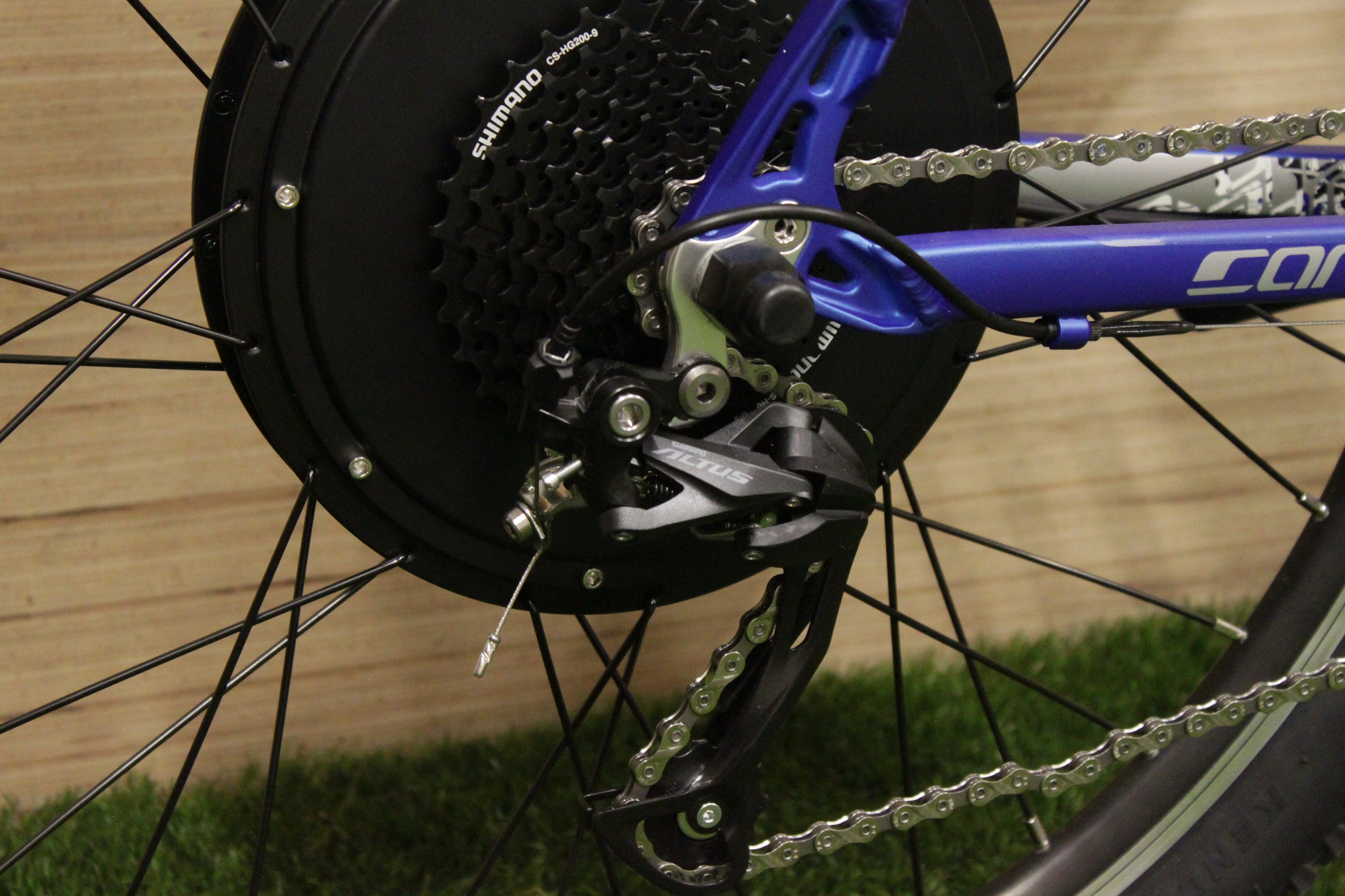 All components are entirely brand new, certified and include a 1 year manufacturers warranty. The frame has been professionally adapted to integrate the hub rear motor.